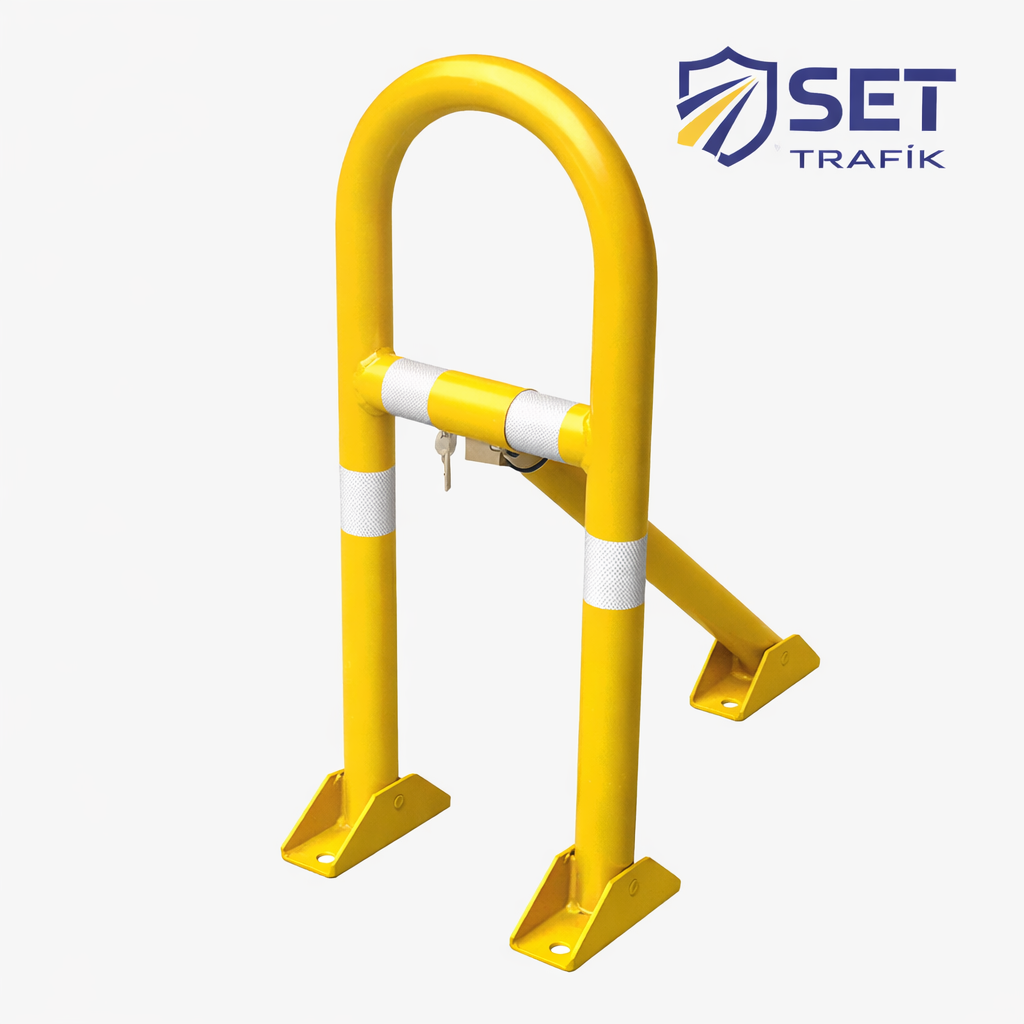 Kilitli Otopark Direği Destekli 62 cm, Yatar U Tip Park Bariyeri
